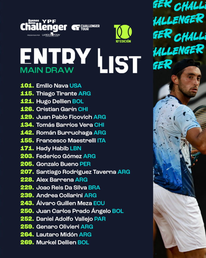 El primer preclasificado del YPF Buenos Aires Challenger será Emilio Nava (101°). El nacido en Los Ángeles ganó tres Challengers sobre polvo de ladrillo en 2025 (Asunción, Concepción y Sarasota) y obtuvo victorias en los Masters 1000 de Cincinatti y Canadá. Además, el torneo contará con las participaciones de Cristian Garín (126°), ganador de cinco títulos de ATP a lo largo de su carrera y ex número 17 del mundo en 2021; y el boliviano Hugo Dellien (121°), finalista este año de la primera edición del Rosario Challenger y campeón del certamen del mismo nivel disputado en Prostejov, República Checa.