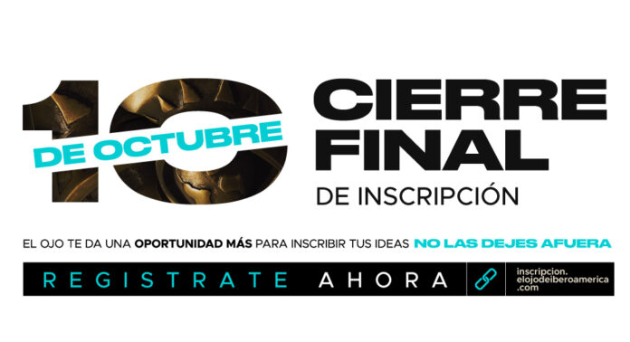 El Ojo de Iberoamérica anuncia la extensión final hasta el próximo 10 de octubre para que todas las empresas que quieran darle una oportunidad a sus mejores ideas y trabajos de ser reconocidas en el festival internacional El Ojo de Iberoamérica, puedan hacerlo. La decisión fue tomada a pedido de agencias, productoras y anunciantes de la región, que solicitaron más tiempo para culminar la preparación y presentación de sus piezas creativas. Este será el plazo final, con lo cual el festival invita a todos los que tengan buen trabajo a no desperdiciar esta última oportunidad.