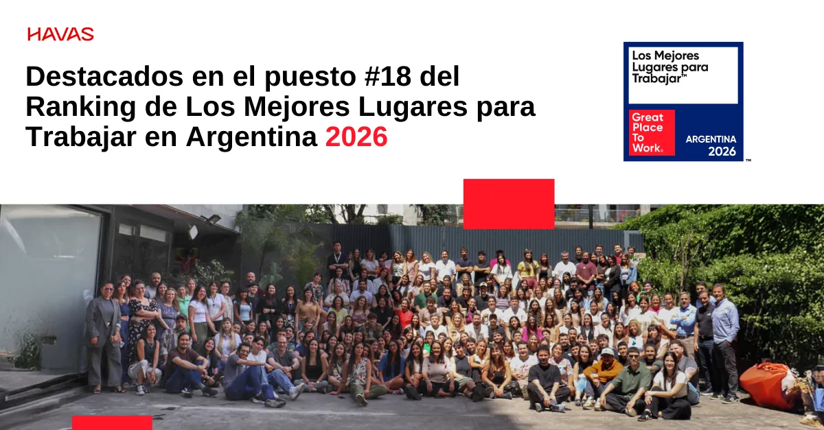 Great Place To Work?, la autoridad mundial en cultura organizacional, ubic? a Havas Argentina en el puesto 18 del Ranking de Los Mejores Lugares para Trabajar™ en Argentina 2026, dentro de la categor?a de empresas de 251 a 1000 colaboradores, un reconocimiento que destaca a las organizaciones que construyen experiencias laborales de alto impacto para sus equipos.