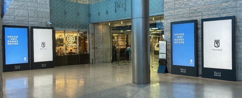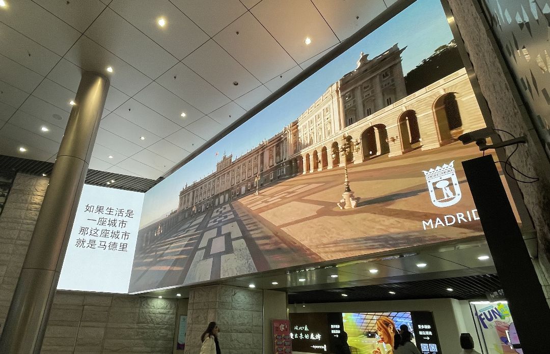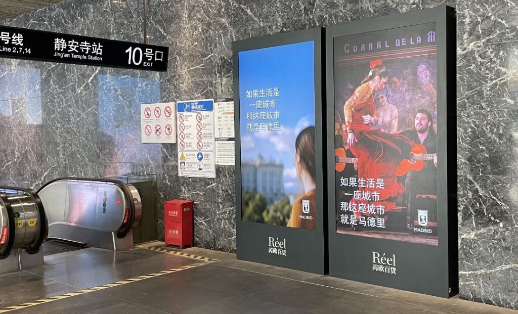 Con 28 espectaculares pantallas estratégicamente ubicadas en los pasillos que conectan el centro comercial Reel y la estación de metro Jingan Temple, Worldcom OOH e Irismedia han acercado la belleza y los atractivos de la ciudad de Madrid a los ciudadanos chinos, invitándolos a descubrir la capital española.
