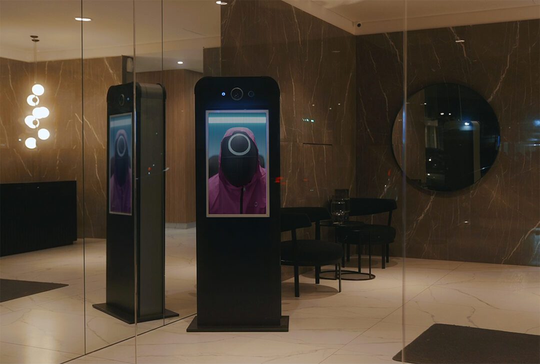 De la noche a la mañana, los tótems de seguridad de los principales edificios de la ciudad de Buenos Aires tienen nuevos guardias custodiándolos: los guardias de la serie El Juego del Calamar, que estrena su segunda temporada este 26 de diciembre.