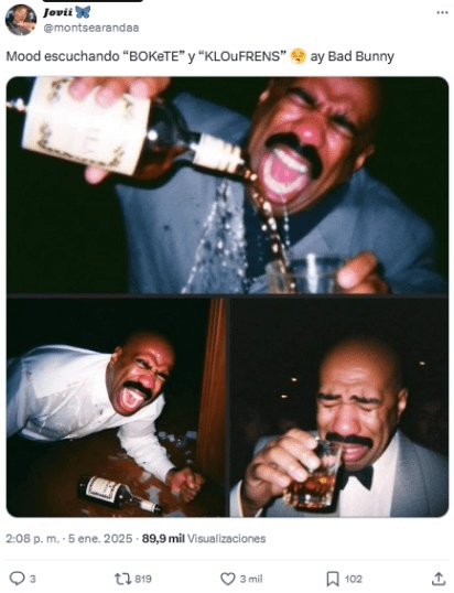 En este sentido, las letras generan identificación en los usuarios, principalmente desde la vulnerabilidad que muestra el artista, y X se llenó de relatos y memes relacionados a corazones rotos, a despechos, a extrañar a alguien, a la nostalgia y, en algunos casos, también usando el título y/o la portada del disco: