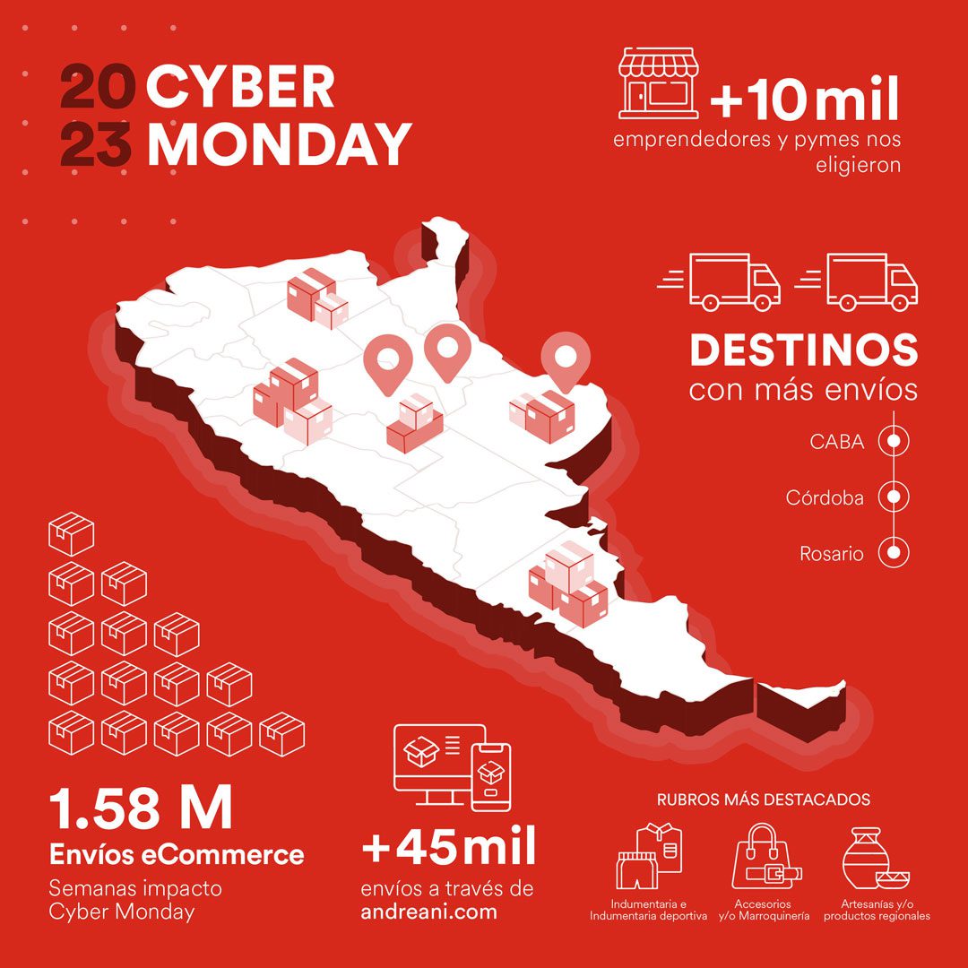 Durante el período comprendido entre el Cyber Monday y el Cyber Week 2023, organizada por la Cámara Argentina de Comercio Electrónico (CACE), el Grupo Logístico Andreani registró más de 45 mil envíos en todo el país a través de su plataforma de eCommerce, confirmando su aporte estratégico en el ecosistema de la logística y el crecimiento del comercio electrónico en la Argentina.